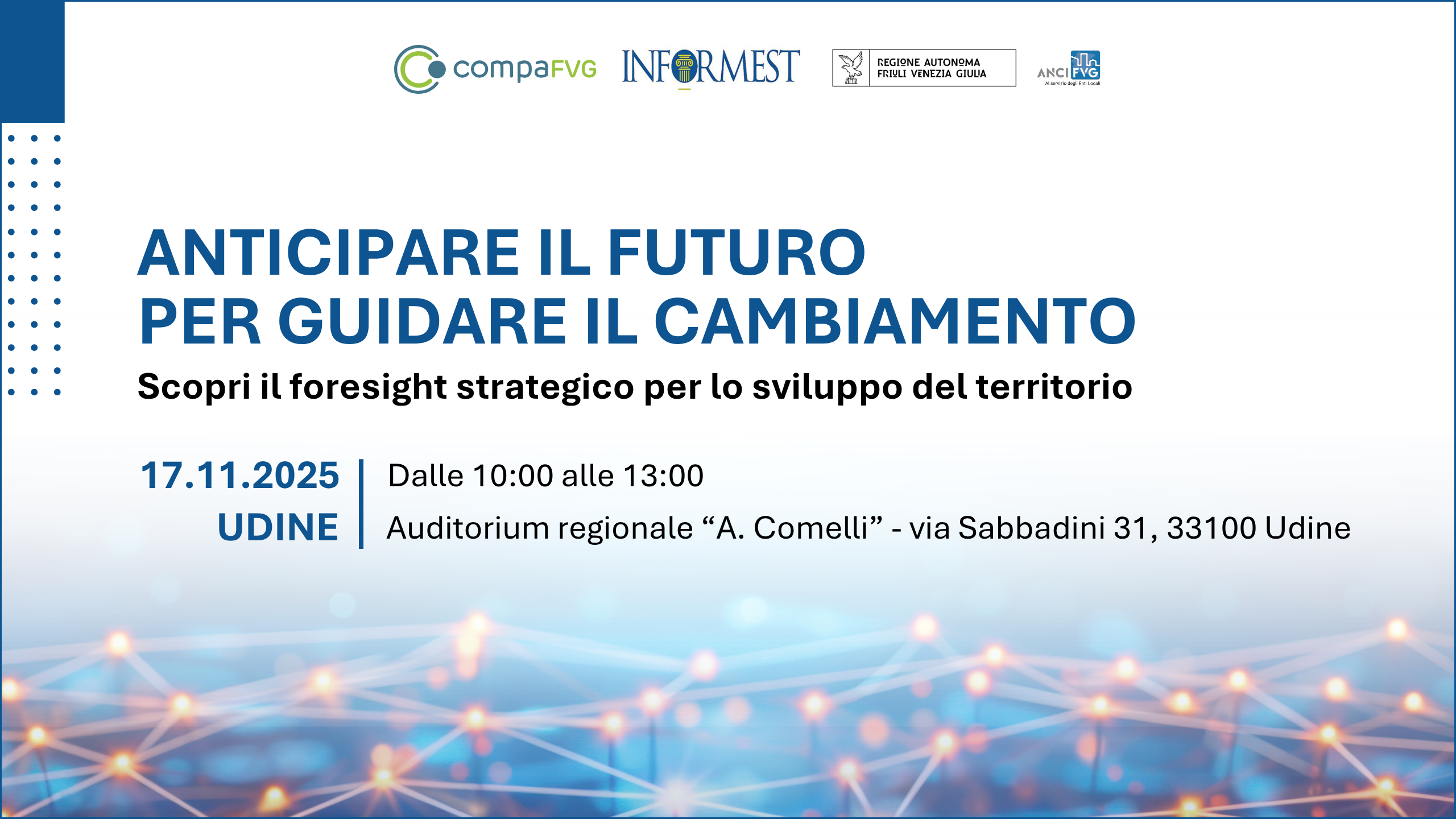 Durante l’evento scopriremo insieme metodi, strumenti e casi concreti per applicare il foresight strategico alla programmazione territoriale, utilizzando questo approccio innovativo per leggere i segnali del cambiamento, immaginare scenari futuri e progettare strategie di sviluppo sostenibili e lungimiranti.