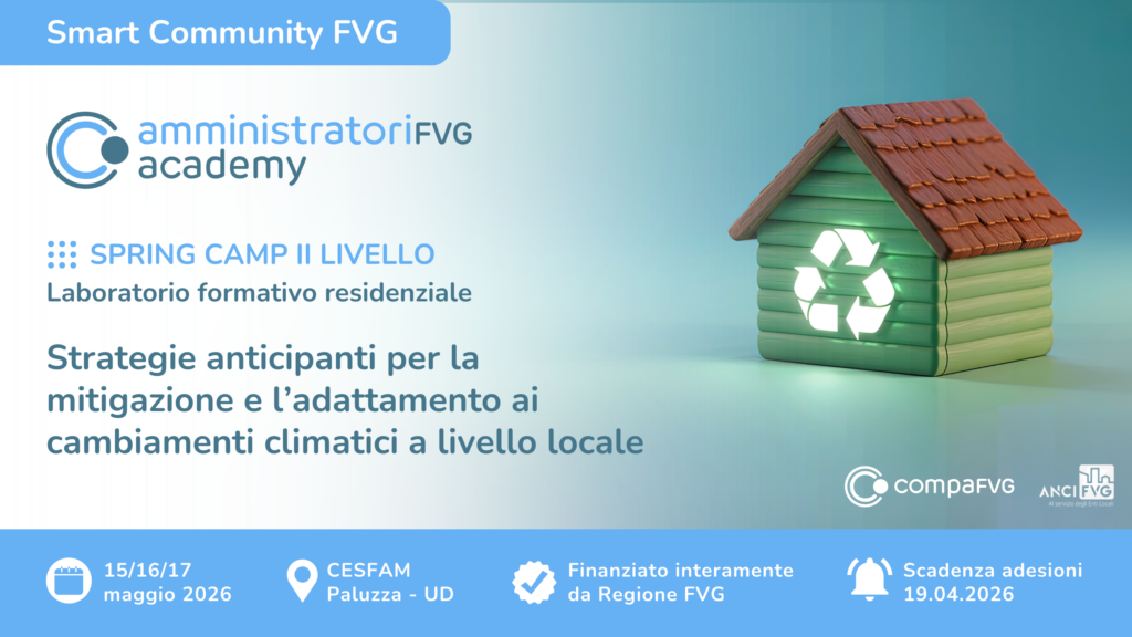 Lo Spring Camp, nato nel 2022 e organizzato da ComPA FVG in collaborazione con ANCI FVG, è il laboratorio formativo residenziale di II livello riservato agli Amministratori e alle Amministratrici della Regione Friuli Venezia Giulia facenti parte della Smart Community per lo sviluppo locale.